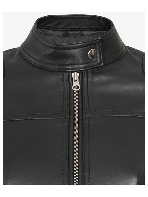 Womens Short Body Cafe Racer Leather Jacket.